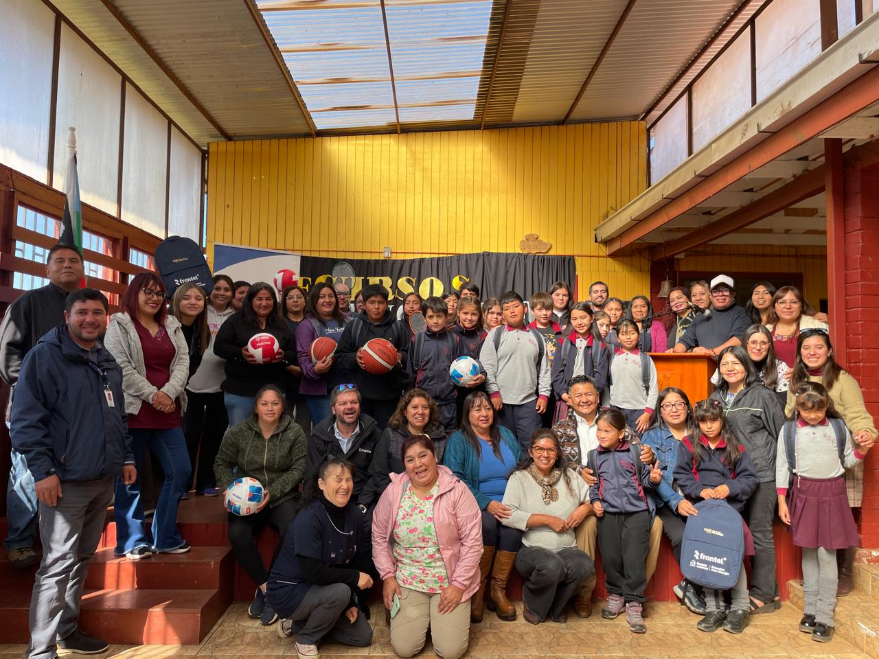 300 mochilas con útiles escolares e implementación deportiva a estudiantes desde kínder a octavo básico, de la Escuela Nuevo Toqui Caupolicán de Cañete.