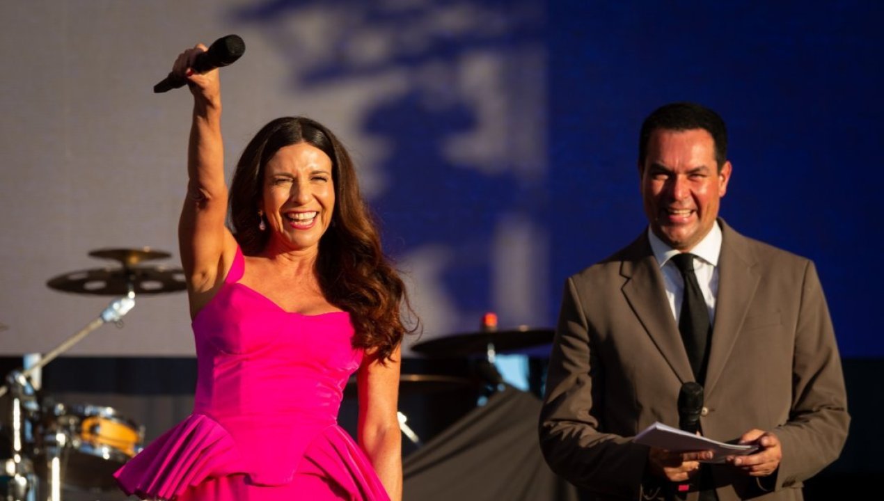 El evento fue animado por Marcelo Arismendi, conductor de Patagonia Radio, junto a Karla Constant, quienes guiaron una noche marcada por la música, el humor y la controversia.