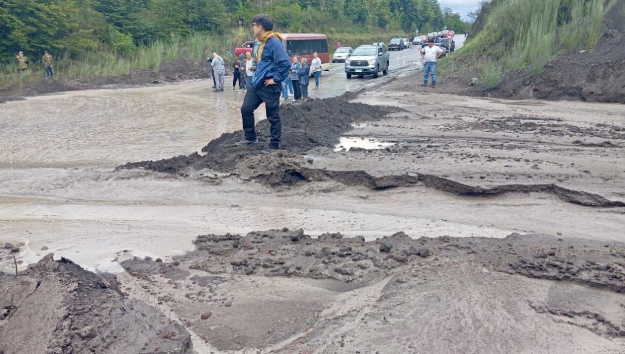 El tránsito fue suspendido este sábado en el sector Cruce Los Patos, en la Ruta CH-225, que conecta Puerto Varas con Ensenada y Petrohué, debido a un deslizamiento de material provocado por las intensas lluvias asociadas al sistema frontal que afecta a la Región de Los Lagos.