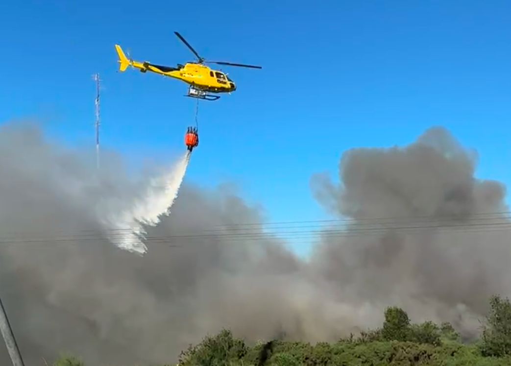 Una quema de matorrales de mediana extensión se registra la tarde de este domingo en el acceso norte a Puerto Montt, frente a la plaza de peajes de la Ruta 5, generando densa humareda, riesgo para viviendas cercanas y posible disminución de visibilidad vehicular. En el lugar trabajan Bomberos, brigadas de CONAF y un helicóptero de combate aéreo, mientras SENAPRED monitorea la situación.